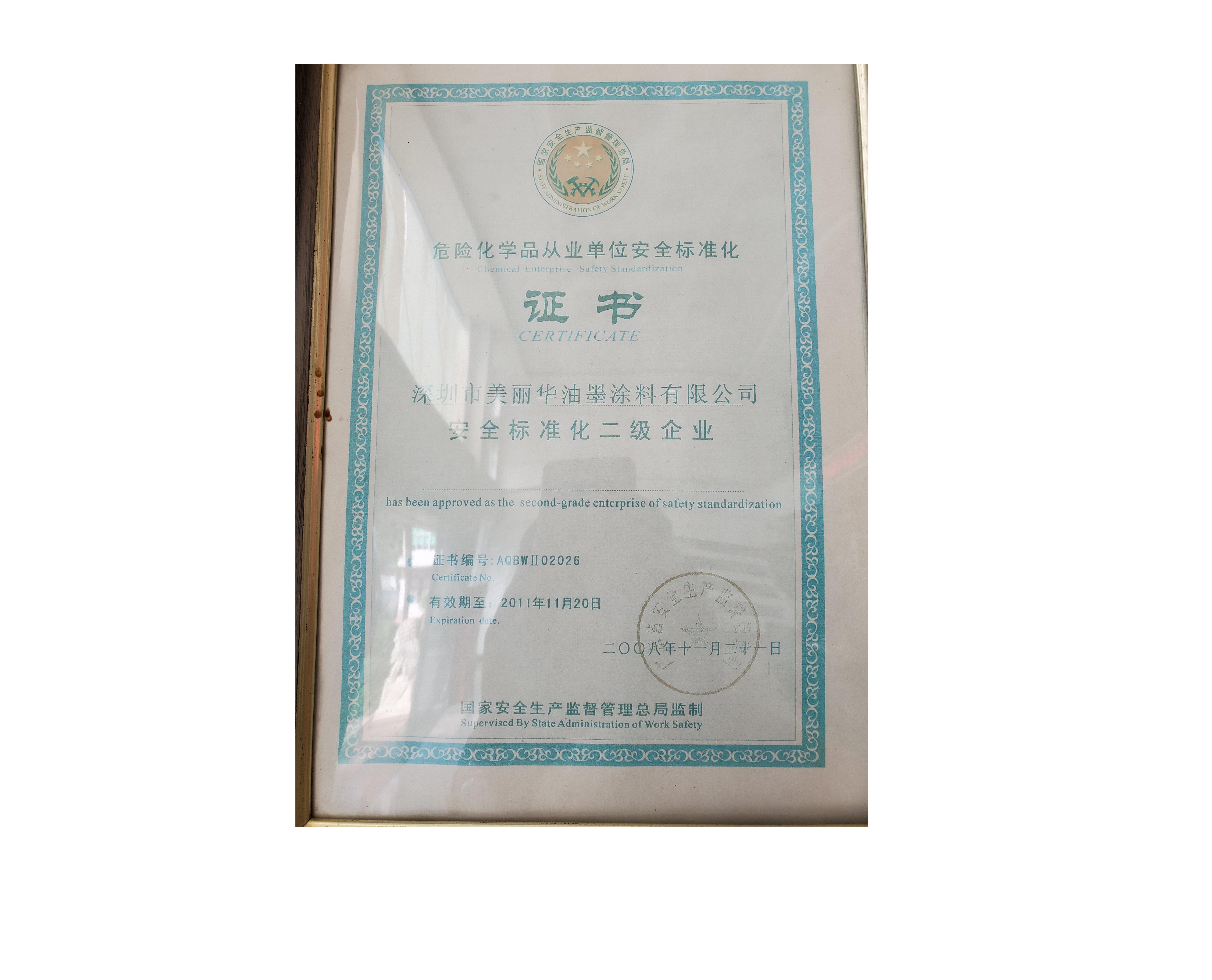 • 危险化学品从业单位安全标准化证书