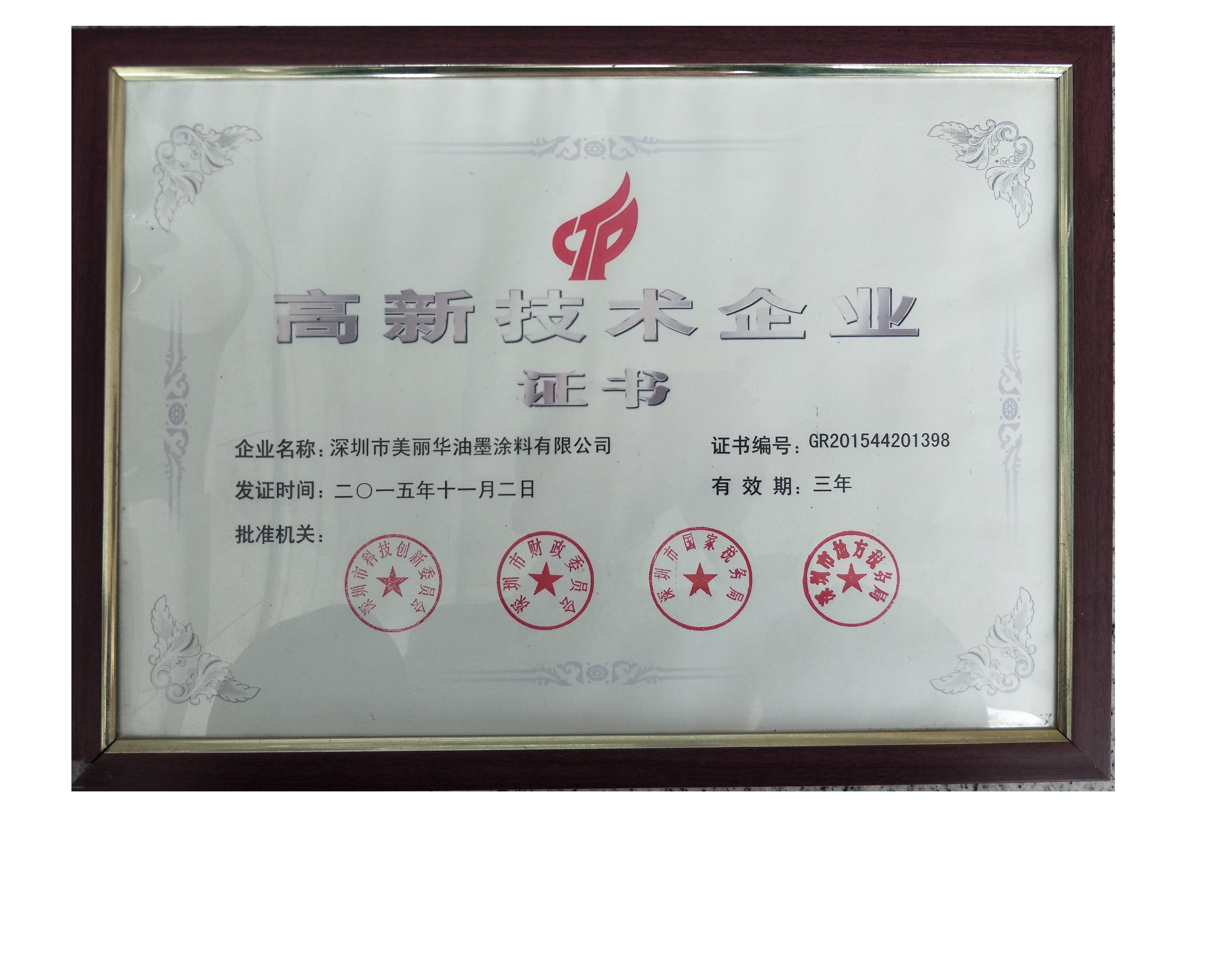 • 高新技术企业证书