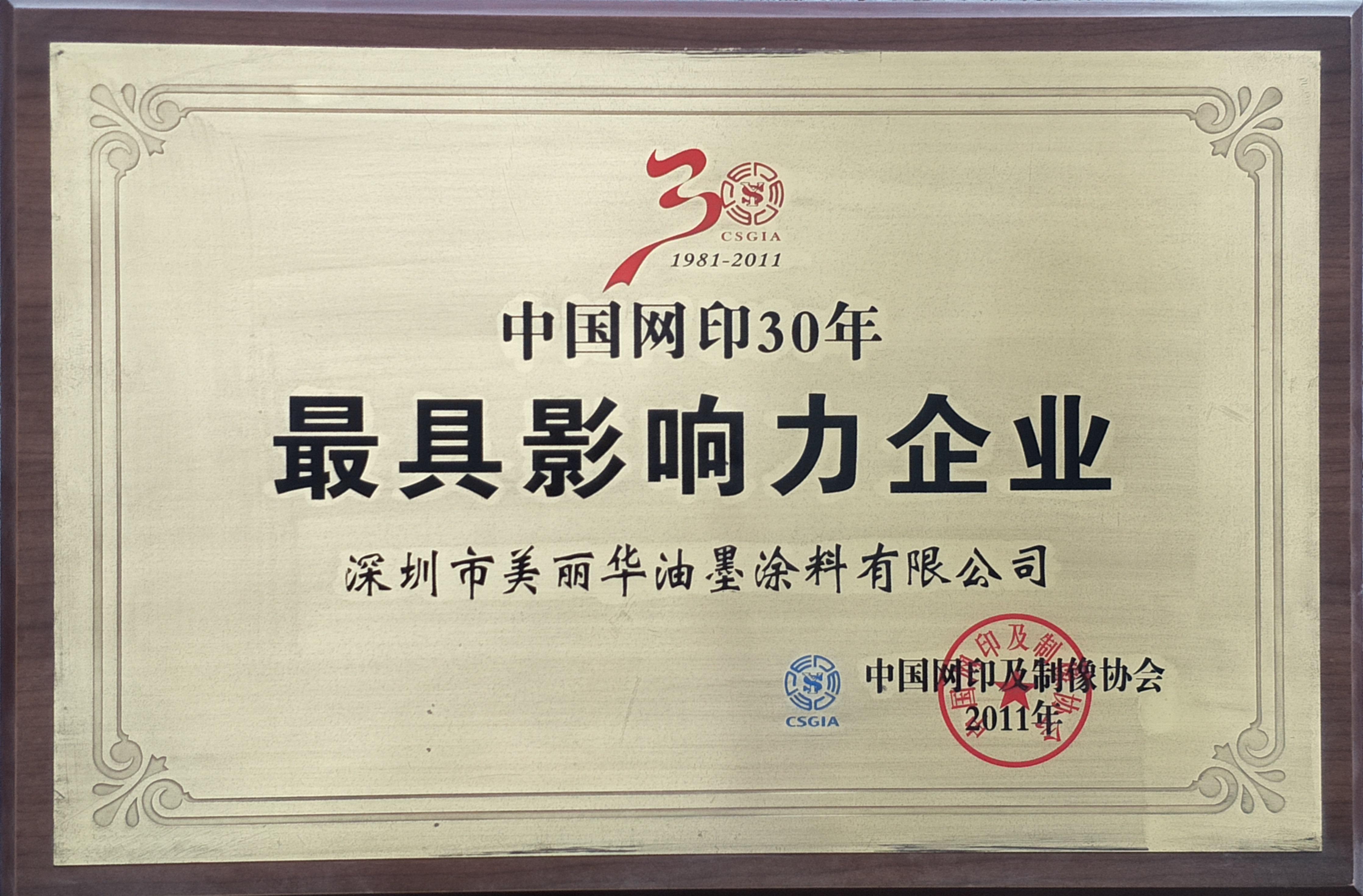 • 中国网印30年最具影响力企业