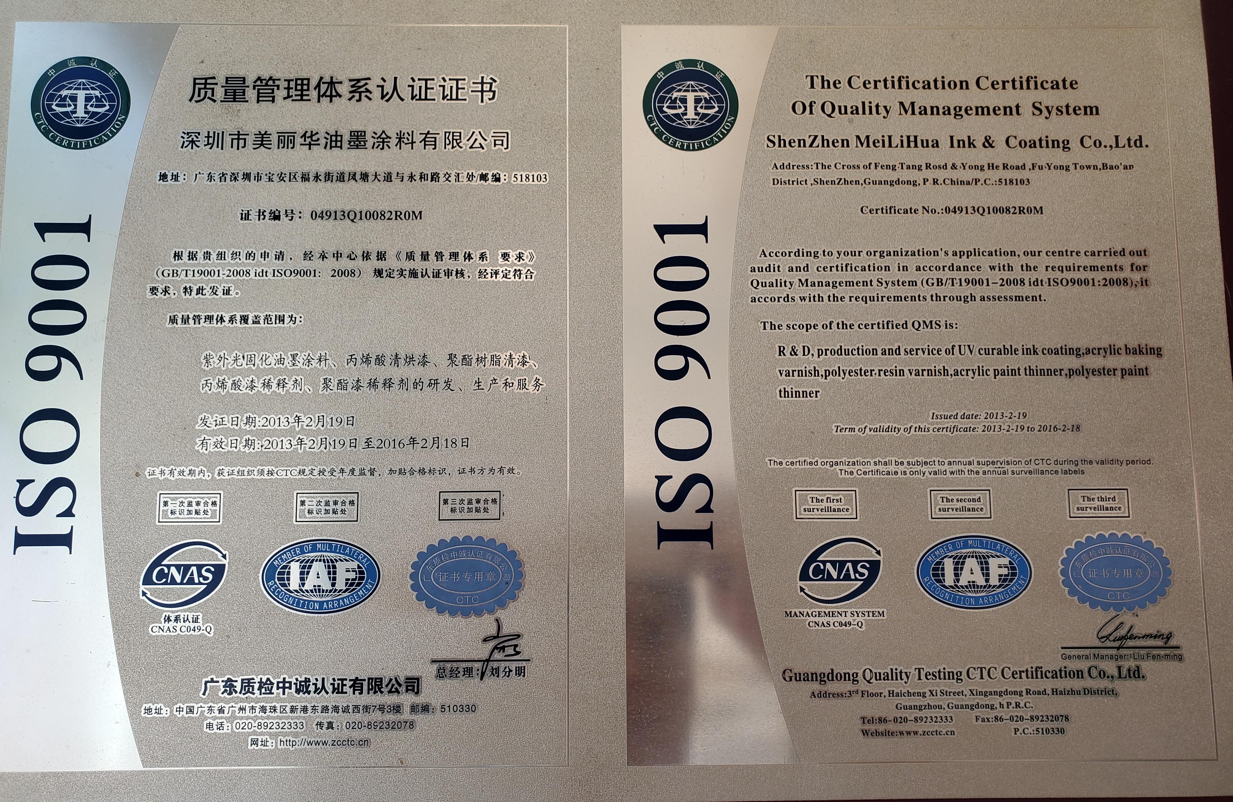 • ISO9001质量管理体系认证证书